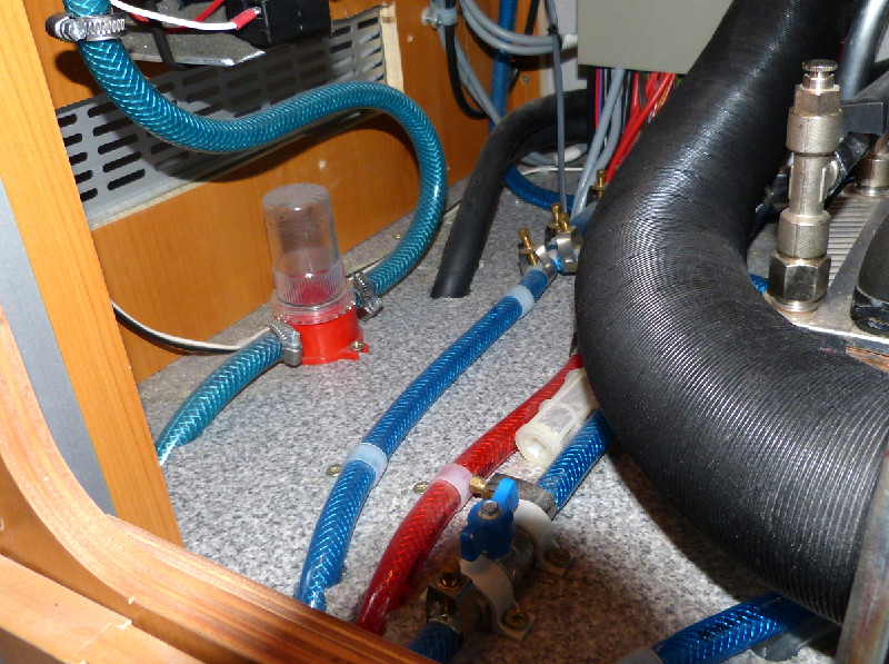 Heute alle Hähne geöffnet und es liefen ca. 10-15 Ltr. Wasser durch den Entleerungsschlauch ab. Sehr sauber verarbeitet, sieht fast aus, wie ein Anschauungsmodell aus der Schulzeit :-D