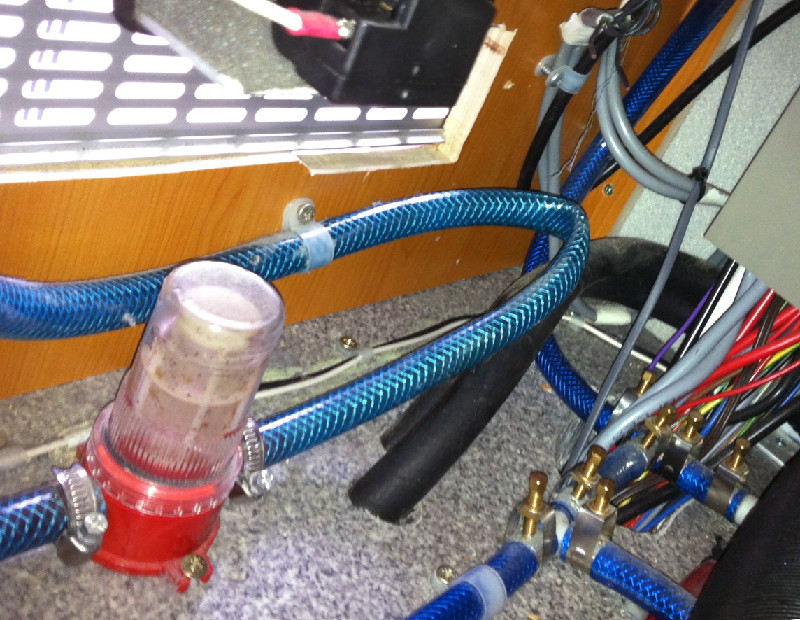 Der weisse Schlauch ist eine Verlängerung vom Roten-Boiler-, ein blauer Hahn kommt vom blauen Schlauch-Kaltwasser-. Ein blauer Hahn mit blauen Schlauchstück kommt vom roten Schlauch-Warmwasser-. Nicht gerade kenntlich gemacht, aber geht trotzdem. Süsslich schmeckte nichts, also kein Frostschutz. :D Sehen konnte ich die Entleerungsschläuche unter dem Auto nicht, weil direkt darunter der Gastank sitzt. Die Bilder sind von meinem NiBi, helfen dir aber nicht wirklich. Es ist aber aufgeräumt und beschriftet.