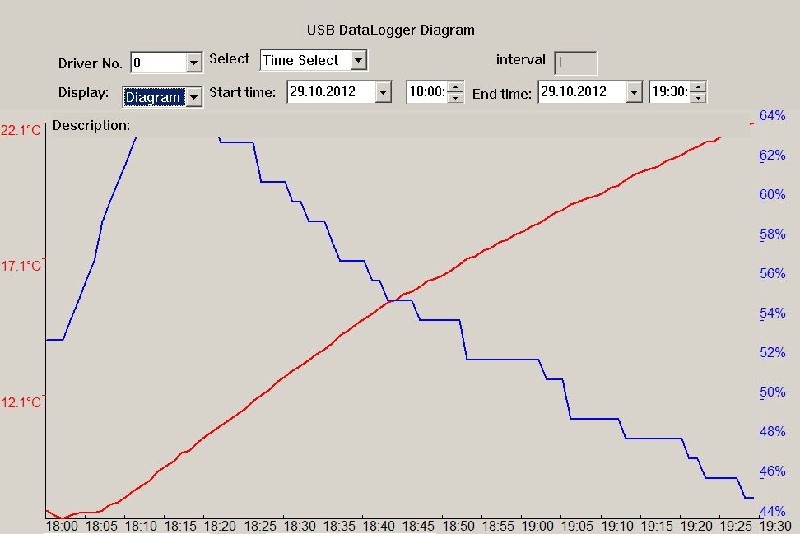 4) Nach 90 Minuten (oder wenn die 20 Grad eindeutig erreicht sind) wird der Datenlogger ausgelesen.