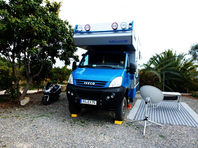 Wenn es dich beruhigt - und damit deine Augen wieder gut werden: letzte Nacht und heute vormittag hat es bei uns leider geregnet. Aber es ist immer noch relativ warm mit so 15-16°. Der Wetterbericht sagt aber für nächste Woche schon wieder Besserung voraus (heute am Nachmittag blinzelte schon wieder die Sonne aus den Wolken)! Habe die Ehre Gogolo 21 Feb 2013 14:21:35 Lieber gogolo, dieses Forum ist das erste, dem ich mich vorbehaltlos anschließen möchte. Der Zufall hat es gewollt, daß ich auf den Schwangerschaftsverlauf, die Hochzeit und die Geburt Deines Prachtstücks aufmerksam geworden bin. Den guten Wünschen und dem Lob für Deine präzise Vorbereitung und Durchführung der Gewerke bei der Firma bimobil schließe ich mich gerne an. Ich selbst habe in 2001 mit einem Ducato Alkoven von EURA angefangen ; 7/2010 kam dann der Wechsel auf LB 355 T5 4Motion bimobil. Da mir das unabhängige und freie WoMo-Leben auch noch mit 67 immer mehr gefällt, will ich jetzt noch einmal alles richtig machen und mir ein Traummobil anpassen lassen. Mir geht es nicht so sehr darum, die absoluten Grenzen beim Offroad-Fahren auszureizen; vielmehr möchte ich auch in weiter Ferne die entsprechend einsamen, unwegsamen Wege und Stellplätze befahren und aufsuchen können, ohne mir Sorgen machen zu müssen: Wie komme ich da jetzt wieder raus? Überraschungen gibt es dann immer noch genug; doch technisch will ich dann ausreichend Reserven besitzen. Den Innenausbau Deines GOGOLOBILS kenne ich ja schon etwas von meinem eigenen LB 355. Doch ich möchte jetzt vieles ähnlich wie Du in einem neu anzuschaffenden EX 358 anders gestalten und optimieren. Die wesentlichen Strukturen - soweit nicht auch von mir schon geplant - würde ich so wie Du gestalten. Allerdings wäre mir Dein professioneller Rat sehr willkommen. Da ich in Frankfurt am Main wohne, ist das mit der "Geburtsbegleitenden Anwesenheit" in Oberpframmern etwas kompliziert. Deswegen habe ich mit einem Händler bei Erlangen Kontakt aufgenommen; der direkte Weg - so wie Du ihn gegangen bist - scheint mir aber doch erforderlich zu sein. Es würde mir sehr helfen, wenn Du zu einem persönlichen Kontakt bereit wärst, um die Dinge bei den von Liebes ins Laufen zu bringen. Beim Erwerb meines LB 355 und auf der Düsseldorfer Messe hatte ich mich wohl etwas zu sehr von der wie Du schreibst "Trockenen Art " des Chefs überfordert gefühlt. Nach Deinen sehr positiven Erfahrungen würde ich gerne auch in ähnlicher Weise den berühmten Draht zu bimobil finden und mein neues WoMo dort "erschaffen" lassen. Dein Einverständnis abwartend, würde ich dann den Kontakt zu Dir über die Firma bimobil herstellen. Zur Technik: Jemand hat im Forum von Annäherungssensoren geschrieben? Ich persönlich hatte früher Clifford Radar Alarm: War gut, man schlief in einsamer Gegend besser. Leider gibt es das System von Clifford nicht mehr in der alten, robusten Form mit gekapselten Sensoren. Wie hast Du das gemacht? Der Bewegungsmelder über der Aufbautüre ist eine tolle Idee. Sind die übrigen Fenster auch alarmgesichert? Ich wünsche Dir viel Freude bei allem, was vor Euch liegt; bleibt gesund, und wenn Du Zeit hast, schreib' mir mal im Forum Reinhold67 Hallo Reinhold, ich bin noch bis Mitte März im Ausland unterwegs und würde anschließend nochmals auf die Sache zurückkommen. Vorab: einen Annäherungssensor habe ich nur bei der Aufbautüre. Es gäbe auch die Möglichkeit eine Rundumbeleuchtung, gesteuert über Annäherungssensoren, einbauen zu lassen. Aber ich habe dies noch nie wirklich gebraucht... Habe die Ehre Gogolo PS: den nächsten Bericht über den Reiseverlauf gibts in Kürze - ich warte nur etwas schlechteres Wetter ab. Derzeit ist es mir zum schreiben viel zu schön draußen und auch zu warm. zu schön und zu warm und hier :cry: :cry: :cry: Kaum hatte ich meinen letzten Bericht an Euch geschrieben und vom schönen Wetter hier in Malaga geschwärmt wurde es etwas kühler (15-18“) und auch leider etwas regnerischer. Aber zwischendurch kam immer wieder die Sonne hervor und dann im Sonnenschein hatte es gleich wieder über 20°. Aber dann kam gleich wieder ein stabiles Hoch mit Temperaturen in der Sonne, da musste ich meinen Stuhl in den Schatten stellen, so heiß war es! Über Satellit hören wir heimatliches Radio (Antenne Bayern) und müssen vernehmen, dass in unserer Heimat sehr viel Schnee gefallen ist. Die Wettervorhersage sagt für die nächste Zeit wieder höhere Temperaturen an. Das wird dann eintreten, wenn die Gipfeln der Sierra Nevada wieder schneefrei sind, denn dort oben hat es geschneit – kein Wunder, denn der höchste Berg des spanischen Festlandes, der Mulhacén mit 3.482m liegt dort. Der höchste Berg Spaniens ist übrigens der 3.718 m hohe Teide auf Teneriffa (den werden wir bei der nächsten Überwinterung 2013/14 besuchen). ![]() Auch haben wir zwischenzeitlich unseren Standort gewechselt und sind so ca. 400km in Richtung Nordosten gefahren. Derzeit stehen wir auf dem schönen Campingplatz „Orange Grove“ bei Alfaz del Pi (in der Nähe von Benidorm) – siehe im Internet: --> Link. Der kleine, gemütliche Platz ist rappelvoll mit Überwinterern aus England, Holland und Deutschland. Die einzelnen Stellplätze sind sehr groß und wir stehen auf einem wunderbaren Aussichtsplatz mit Blick auf das Meer, Orangenhainen und Palmen. Auf dem Platz sind auch gute Bekannte von uns, die uns diesen Standplatz reserviert hatten – Danke an Siegi mit Uschi und Gerd mit Angela. ![]() Aber nochmals zurück zu unserem Aufenthalt in Torre del Mar: Im gesamten Gebiet von Torre del Mar ist freies Stehen mit dem Wohnmobil in der Zeit von 21 Uhr bis 9 Uhr – also übernachten – verboten. Trotzdem versuchen es immer wieder welche bis sie von der örtlichen Polizei vertrieben werden. Diese „Wohnmobilisten“ bringen wieder einmal unser gemeinsames Hobby in Verruf. Es hätte sicher niemand etwas dagegen, wenn einmal ein einzelnes Wohnmobil für eine Nacht irg