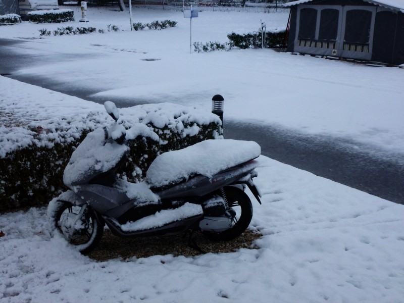 Schneestürme??? Schneestürme??? Die gibts hier nicht!!! Du meinst wahrscheinlich HITZEWELLEN, so wie heute mit ca. 20° - gefühlt waren es aber 25° bei wolkenlosen Himmel. Wir sind im T-Shirt mit dem Roller herum gefahren.