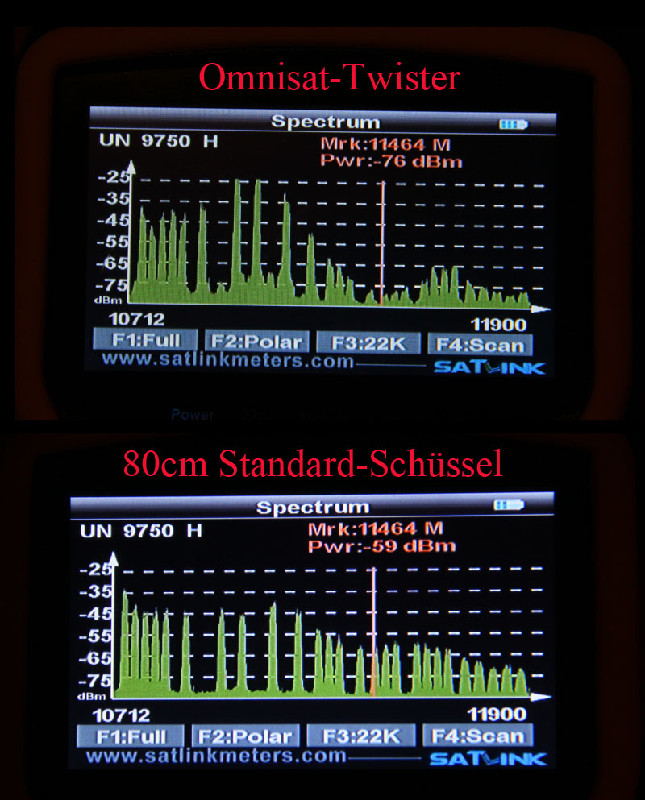 Zuhause habe ich mal dieses Phänomen mit einem Mess-Empfänger sichtbar gemacht und mit meiner Zuhause-Schüssel verglichen: