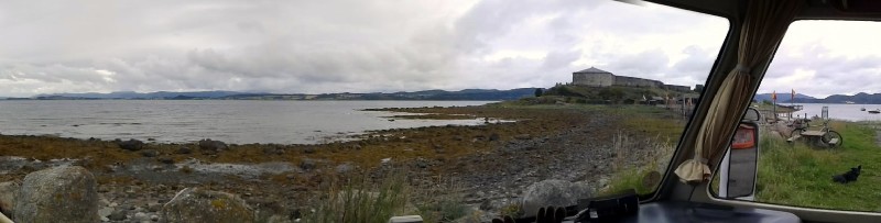 So gegen 21.00 uhr kommen wir dann endlich los und weil´s ja schon so spät ist fahren wir auch nicht mehr so lange. Unsere reiserichtung ist nördlich, was ihr ja an hand der reiseroute auch feststellen konntet. Nach ca. einer stunde und knapp 50 km erreichen wir einen uns schon bekannten platz zum übernachten - den parkplatz am Steinvikholmen - einer gut restaurierten und erhaltenen burgruine auf einer kleinen insel im Åsenfjord, einem kleinen nebenausläufer des bekannten großen Trondheimsfjord.