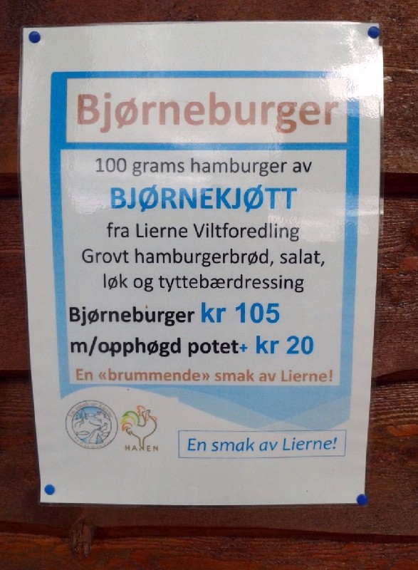 Wir gucken uns an, schon mal bei einem versuch in Schweden Bärenfleisch zu bekommen hatte das auch nicht geklappt, und auf dem kleinen plakat steht nicht wo es das gibt.