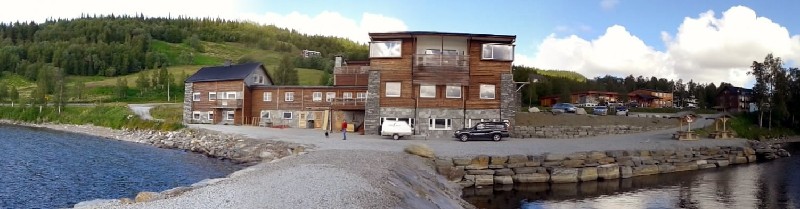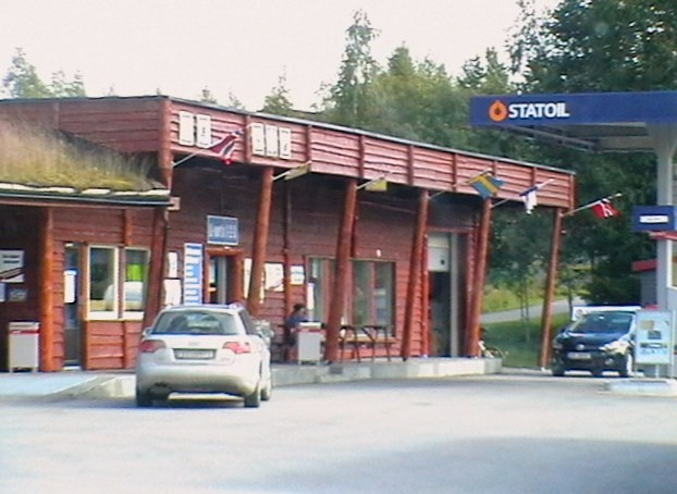 Also wieder rein in die tankstelle und fragen, der freundliche tankstellenmann sagt "yes" und freut sich lächelnd doch noch was für uns tun zu können. Mit etwas englisch will er uns was erzählen, was wir wiederum stoppen und ihn bitten weiter norwegisch zu sprechen nur eben etwas langsamer und deutlich ohne den ortsüblichen dialekt. Da war das eis gebrochen und wir haben eine nette unterhaltung während die Bärenburger im kontaktgrill garen - es duftete schon etwas anders als bei Mc Donalds. Dazu gibt es noch ein Hamburgerbrot, salat, zwiebeln und ein preiselbeerdressing - man, wenn ich das hier so schreibe, läuft mir gleich die spucke im mund zusammen :ja: :mrgreen: Er packt die zwei portionen für uns ein zum mitnehmen, weil wir wenn wir mit dem womo unterwegs sind unsere hauptmahlzeiten früh und abends machen wenn wir einen schönen platz gefunden haben oder bevor wir früh wieder weiterfahren. Wir verabschieden uns als dann doch zufriedengestellte kunden, gehen zum womo um die gut eingepackten Bärenburger im kühli zu verstauen und fahren bloß hundert meter die straße wieder zurück bis an dieses gebäude.