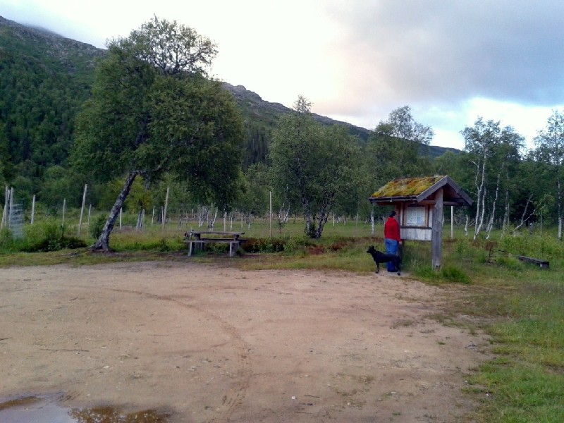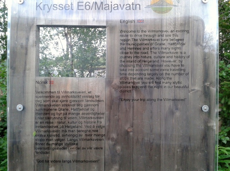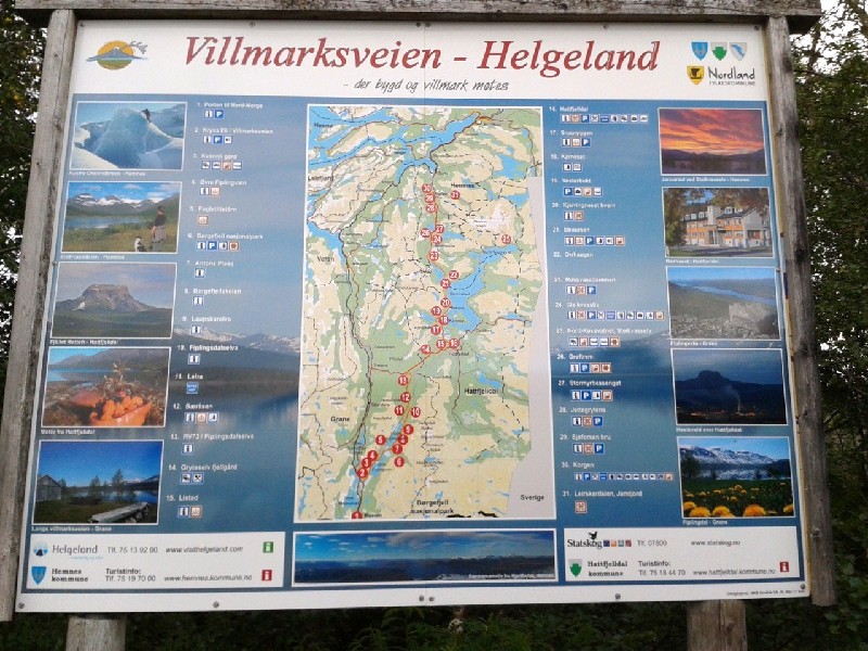 Nach den nun letzten 500 m verlassen wir nach rechts abbiegend die E 6, stellen uns auf den rastplatz und studieren erstmal die dortige infotafel. Alles was wir bis hierher gefahren sind war die anfahrt und erst jetzt haben wir unser eigentliches zielgebiet erreicht, den Villmarksveien - Helgeland, denn, sollte mal jemand googeln, findet er diese bezeichung noch einmal in Norwegen.