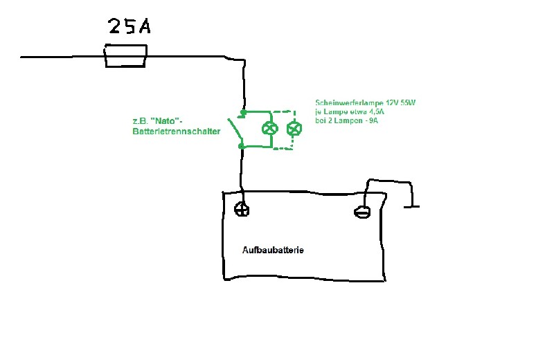 Ohä, meinst Du Deine Ausführungen ernst? Doch wohl nicht wirklich, oder? Dann gehste nämlich fälschlicherweise davon aus, dass die Spannung der Batterie 0 Volt beträgt - und dat tut se nich. Mit der Schaltung verhinderst Du zwar wirksam, dass mehr als 200 Watt aus dem Aggi genommen werden. Aber der verbleibende Reststrom wird so gering sein, dass du Stunden laden musst bevor wieder so viel Saft in der Batterie ist, dass die 200 W auch ohne Lampen nicht überschritten werden. Bon Voyage Hallo, @ wohnwagen-otto interessante Idee. ich begrenze den Ladestrom also, idem ich ihn durch eine Drossel (Birne) fließen lasse. Aber dabei verbrate ich den Strom doch gleich wieder durch die Lampe, oder steh ich jetzt auf dem gedanklich Schlauch? @ Thomas Der 500er ist was für die Handtasche. Etwas mehr als halb so groß wie der 1000er und nur 8kg schwer. Rechtzeitig laden ist leicht gesagt ohne Steckdose. Manchmal steht man auch einfach länger als geplant. Den AGM Batterien scheint das tiefentladen jedenfalls nicht sonderlich zu schaden. Sind schon min. 5Jahre eingebaut. Aus der AGM im Motorraum ziehe ich auch den Strom für das TV. Hier habe ich aber zur Sicherheit einen Spannungswächter eingebaut. Helmut Hallo Michael, aber wenn man anstatt der Birne einen Widerstand nimmt? Aber ist wahrscheinlich das gleiche - geht alles in Wärme auf. Helmut Ja, du kannst nen Widerstand nehmen... Ich würde mal veranschlagen: Restspannung der Batterie 11,0 Volt Ladespannung des Ladegerätes: 13,5 Volt Strom: 18 Ampere 13,5 - 11 ----------- = ca. 150 mOhm, das dürfte dann reichen um unter 18 Ampere Ladestrom zu bleiben. 18 Und nun zur Leistung: I² * r = 45 Watt Also zu Realisation: Eine schlecht angezogene Lüsterklamme und die muss dann 45 Watt abkönnen. So etwas kommt dann ungefähr da heraus. Bei --> Link: 50W METALL 0,15 :: 50Watt Drahtwiderstand, Serie RH050 , 0,15 Ohm Kostet 12 Euro irgendwas und du brauchst natürlich einen riesigen Kühlkörper mit 2 K/W um den Anschlußdraht nicht verbrennen zu lassen - eher weniger wie 1,5 K/W oder 1 K/W. Dazu parallel einen Schalter und das ganzs wäre dann eine "Einschaltstrombegrenzung" Der Schalter muß aber auch die 18 Amperer Dauer abkönnen, Nato-Knochen ist wirklich ein guter Tipp. Bon Voyage Das mit der Lampe als Strombegrenzung meine ich völlig Ernst. Es ist das gleiche Prinzip wie beim Eigenbau-Standby-Lader --> Link. Nur die Diode fällt weg, weil sie hier nicht benötigt wird. Und eine größere Lampe sorgt für größeren Strom. An der Lampe liegt nur die Spannungsdifferenz zwischen Ladegerät und Batterie an. Zusätzlich hat die Lampe einen veränderlichen, temperaturabhängigen Widerstand: (Der Grund warum Lampen immer beim Einschalten kaputtgehen) kalt/ dunkel = kleiner Widerstand, heiß/ hell = großer Widerstand Der durch die Lampe begrenzte Strom fließt aber auch immer in/ durch die Batterie und lädt diese. Bei großer Spannungsdifferenz zwischen Ladegerät und Batterie liegt eine hohe Spannung an der Lampe an, die Lampe leuchtet etwas heller. Der Ladestrom wird durch den hohen Widerstand der heißen Lampe begrenzt. Je voller die Batterie wird, um so geringer wird Die Spannungsdifferenz, die an der Lampe anliegt. Die Lampe wird dunkler, ihr Widerstand nimmt ab, der Ladestrom wird weniger von der Lampe gebremst. Der Ladestrom wird nun vorrangig vom verminderten Spannungsgefälle begrenzt. Die Helligkeit der Lampe ist gleichzeitig eine Anzeige: sobald die Lampe dunkel wird, kann der Batterieschalter geschlossen werden. Die Aufbaubatterie wird auch voll, wenn die Lampe ständig, ohne den Schalter eingebaut wäre. (Der Widerstand der kalten Lampe geht gegen 0) Es dauert nur länger. Mit Schalter können sofort bei 230V Landanschluss die vollen 18A Ladestrom genutzt werden. ------ Das funktioniert. Habe gerade vor einigen Tagen damit eine ursprünglich verpolt geladene Batterie (eines Bekannten) nach dem Entladen langsam wieder richtigrum geladen. Da im Umpolmoment keine Mindestbatteriespannung vorhanden war, musste ich mein ganz altes konventionelles Batterieladegerät rauskramen. Das alte Ladegerät hatte keine eingebaute Strombegrenzung. Die Sicherung brannte sofort durch. Da habe ich zwischen Ladegerät und entladene Batterie eine Lampe 12V/55W eingestetzt. Damit blieb die Sicherung im Ladegerät ganz. Als die Glühlampe nach einiger Zeit fast ganz aus war, konnte ich das Ladegerät ohne Lampe normal/ direkt anklemmen.