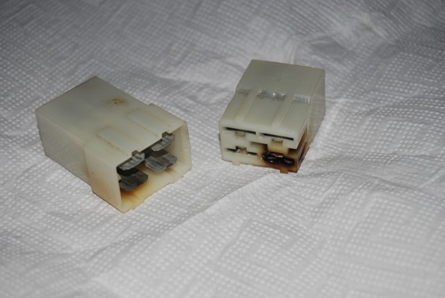 Zuhause war der Fehler mit dem Austausch einer Sicherung scheinbar behoben. Im nächsten Urlaub gab es keine Probleme mehr. Jetzt, 3 Monate später tauchte der Fehler schon wieder auf und nach langer Suche fand ich hinter dem Armaturenbrett auf der Beifahrerseite ungefähr am Stoßdämpfer diese Steckverbindung.