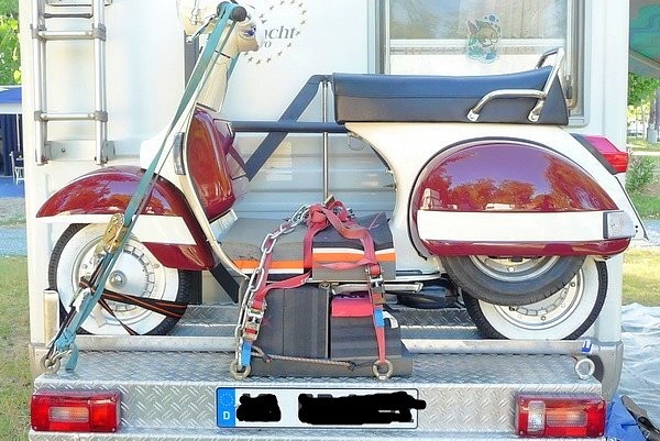 Anmerk zu der Vespa , Alle Verschleissteile Neu inklus Motorlager Kolb Zylind, Beinschilder und Karrosse waren Ohne Beulen, und was Passt zu einem fasst 15 jahre jungem Ital Womo/ Reisemo ein 30 Jahre junger Ital Roller ;-)
