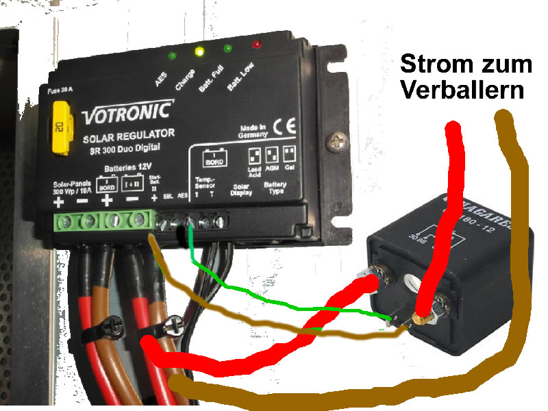 ps es gibt aber für diesen Regler aber einen EBL-Kabelsatz, mit dem dann die Aufbaubatterie und die EBL-Signalader an den EBL angeschlosssen werden (dann braucht man keine zusätzliche Leitung vom Solarregler zur Aufbaubatterie - denn die liegt ja schon am EBL)