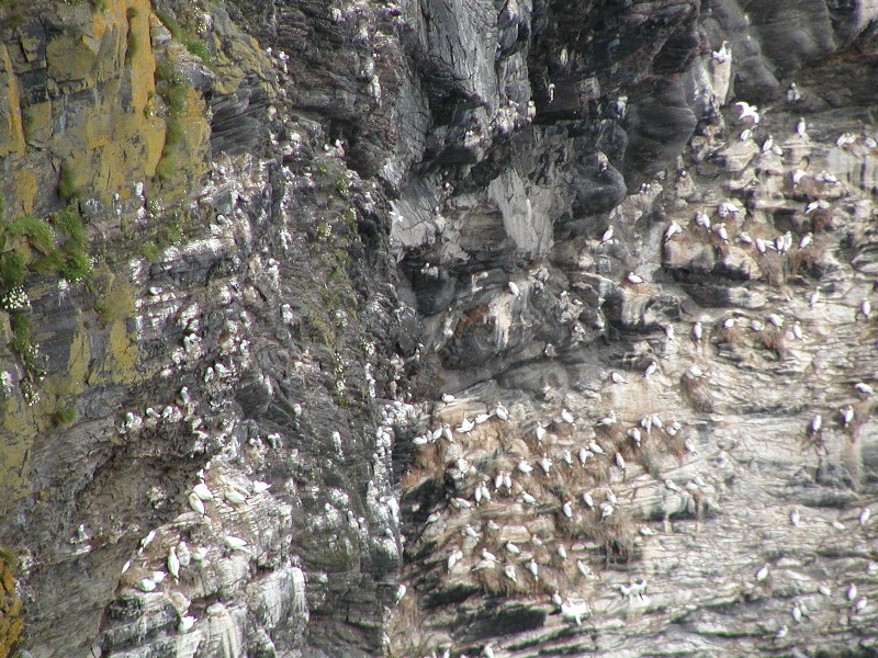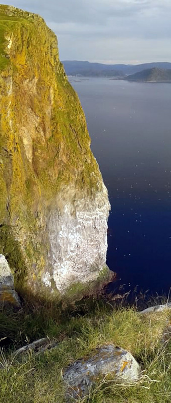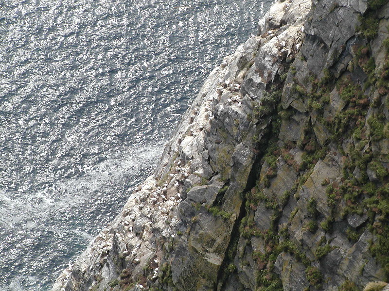 Am ersten vogelfelsen angekommen, zuerst konnte man es riechen, d.h. ein typischer fisch-vogelkot-geruch lag in der luft schon bevor wir die felskante erreichen, dann kommt das möwenkreischen dazu und dann diese aussicht