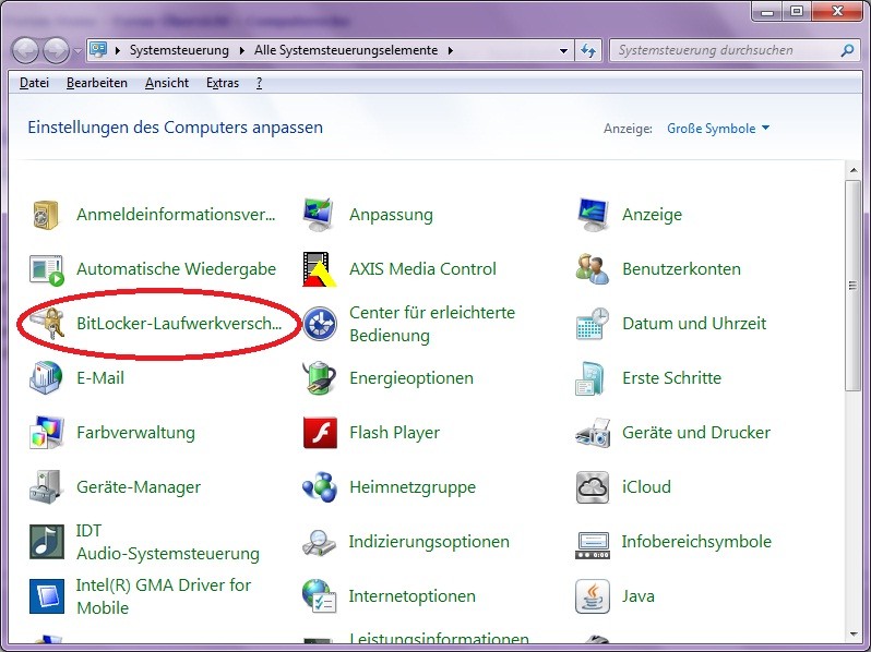 ich meine das das Programm Bitlocker nur bei höherwerigen Windows 7 Varianten (Ultimate und Enterprise ) vorhanden ist.