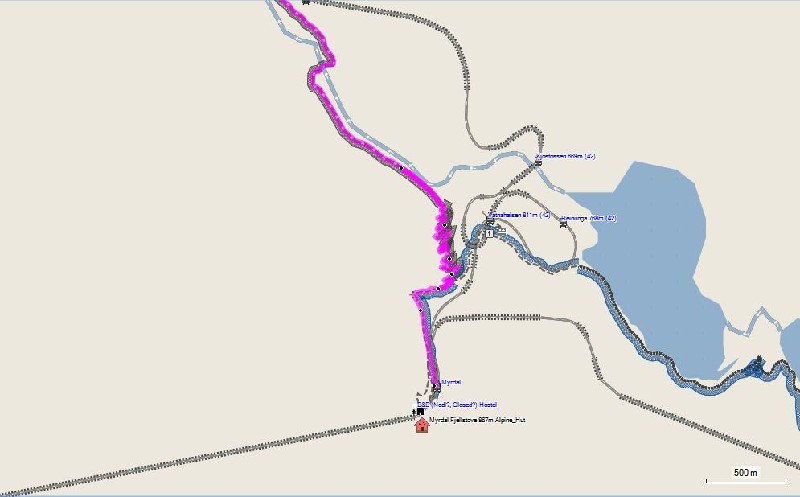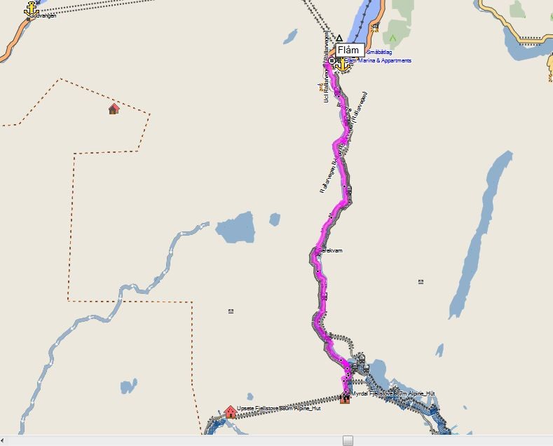 Hi Rundefan, ich plane die Fahrt mit der Flambahn ebenfalls und die Idee des Radfahrens zurück nach Flam reizt mich ziemlich. Wie lange dauert diese Abfahrt denn ca.? Da ich mit einem Kleinkind (1 Jahr und 1 Monat) und Freundin unterwegs bin, möchte ich alleine hinunter fahren, während der Rest der Familie mit der Bahn zurück fährt. Im Idealfall wäre ich nur ein wenig langsamer als die Bahn, so dass wir ziemlich schnell in Flam wieder einen Familienzusammenführung haben können ... :D Hallo wise, ich hab Dir eine KN geschrieben. Achte also auf einen rot blinkenden Punkt bei "perönlicher Bereich". Die Wegbeschreibung und passende Bilder zum Rallarvegn ist sicher nicht für jeden interessant und sprengt ausserdem den Rahmen eines normalen Posts. :D Hier noch ein Kartenausschnit aus OSM-Karte Norwegen. einmal die Gesamtstrecke, im unteren Streckenabschnitt, bis etwa 15 km, fährt man entweder links oder rechts mehr oder weniger neben der Bahnstrecke. Das zweite Bildzeigt die eigentliche Herausforderung, die letzten 800 m der eigentlichen Steigung als Kartenausschnitt und ein altes Dia dieser Strecke. ![]() ![]() Diese Schlangenlinie hoch hat eine Breite von ca. 80 cm ist mit Felsen und Wurzeln durchsetzt ![]()
