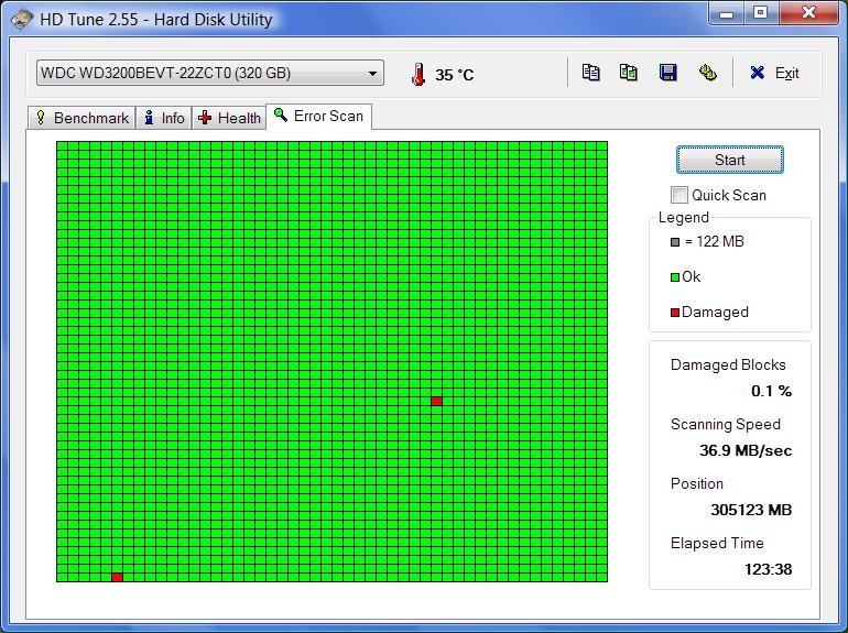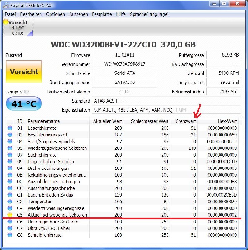 Crystal zeigt mir ua Ergebnis an, das ich nur ungefähr deuten kann die englische Hilfe bringt mich auch nicht weiter, da alles Fachbegriffe. Nach meiner Deutung, ist die Festplatte unsicher. Habe dann HardDiskUtility auch noch zur Prüfung verwendet, dort erstmals deutlich zwei Defekte auf der Platte aber nur 0,1% siehe Foto. Dann las ich beim googeln, dass man am besten mit einer Software des Festplherstellers testen soll. Hab ich gemacht mit einer Software von WesternDigital (Data Lifeguard Diagnostic for Windows), dort kam dann das brutalste Ergebnis siehe Foto, dh das Programm stieg damit nach Sekunden schon aus. Defrag mit "Auslogics Disk Defrag" ergab keine Fehlermeldung.