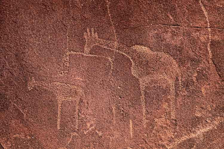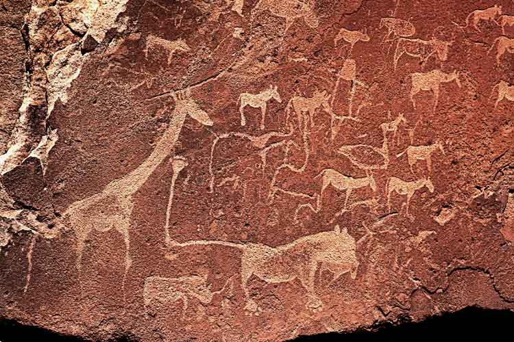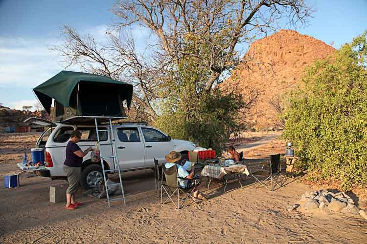 Weiter geht es über Palmwag in das Damaraland. Wir durchqueren das Gebiet der Tafelberge und fahren nach Twyfelfontein. Wir kommen gerade rechtzeitig zu einer geführten Tour zu den Felsritzungen.