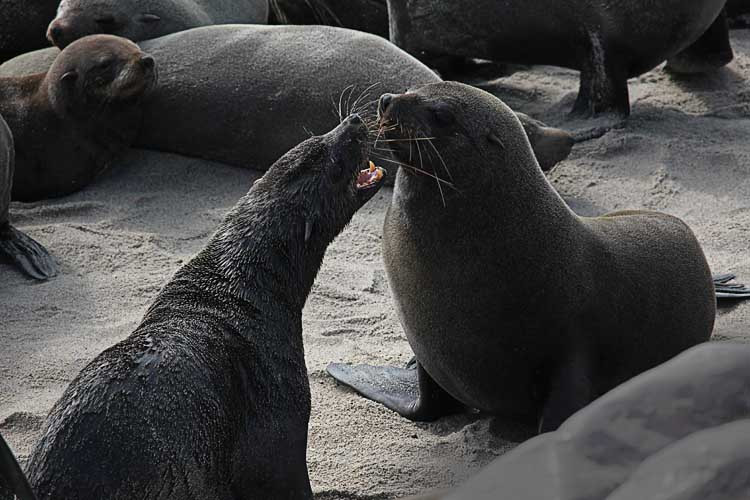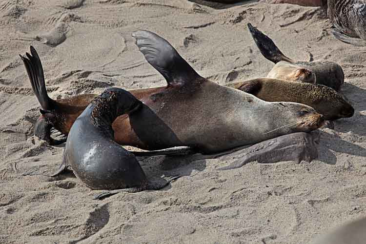 Wir kommen dann zu einer großen Robbenkolonie und wenig später kreisen Delphine ums Boot.