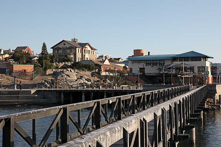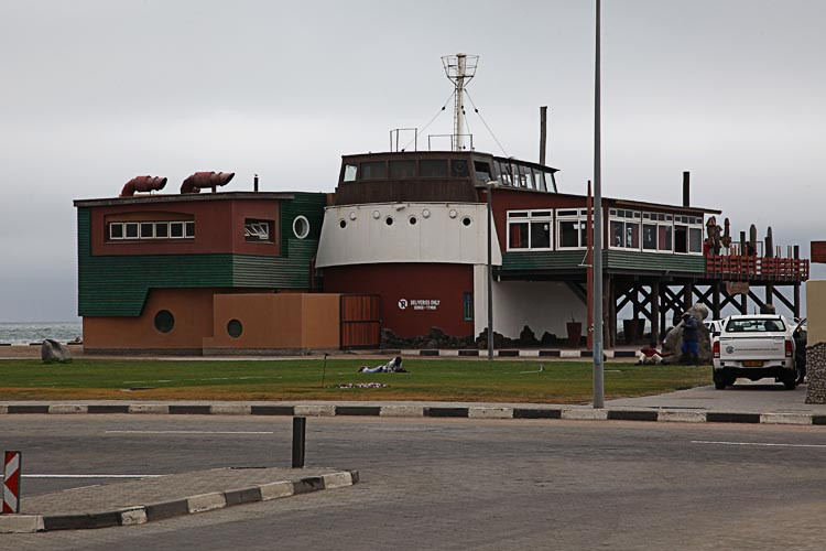 Am Abend suchen wir uns ein Lokal, am besten ein Fischrestaurant. Wir gehen zum Tuk, direkt an der Landungsbrücke „Jelly“ ist ein Restaurant in einem Schiff entstanden. Angeblich ist es das beste Restaurant von Swakopmund.