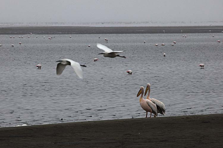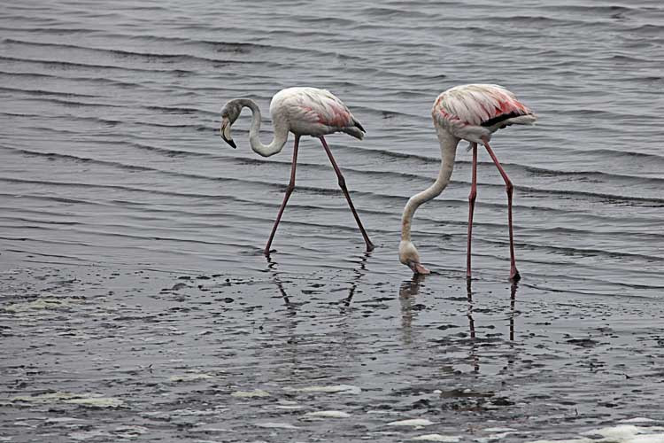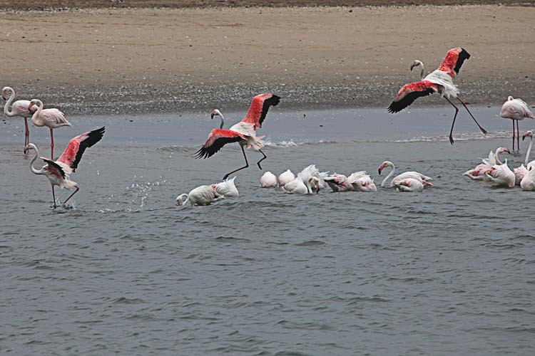 Weiter geht es zur Großen Bucht, Flamingos tummeln sich im Wasser.