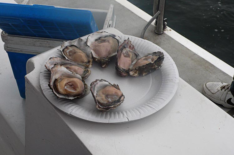 Zur Jause gibt es Fingerfood und nach Belieben frische Austern. Die sind hier extrem billig, eine Auster kostet am Markt ca. N$ 1.-, das sind ein wenig über 10 Eurocent.