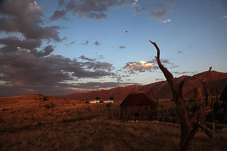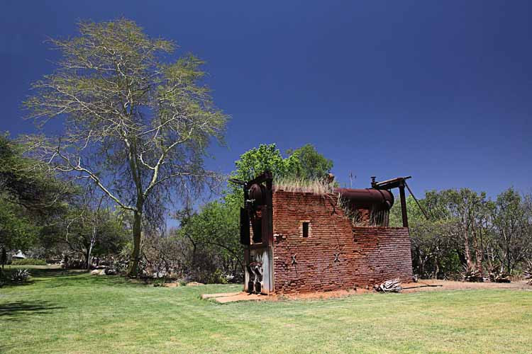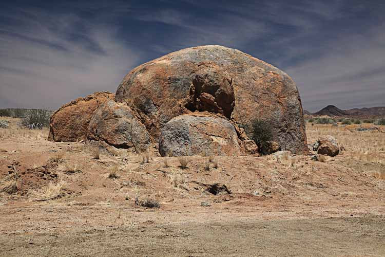 Um 7 Uhr gibt es Frühstück, dann checken wir aus und fahren Richtung Grootfontain. Unterwegs werden noch geschnitzte Elefanten gekauft. Zwischen Rundu und Grootfontain ist eine Kontrollstelle, hier muß alles Fleisch abgegeben werden. Ca. 25 km vor Grootfontain liegt unser heutiges Tagesziel, die Fiume Lodge. 2 km von der Straße und einige Weidezäune später kommen wir an. Wir werden von Paula, die aus der Nähe von Stuttgart ist, herzlich begrüßt und in die Örtlichkeiten eingewiesen. Dann fahren wir noch nach Grootfontain und besichtigen den mit 70 -90 Tonnen Gewicht größten Meteoriten der Welt.