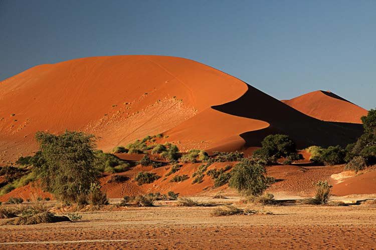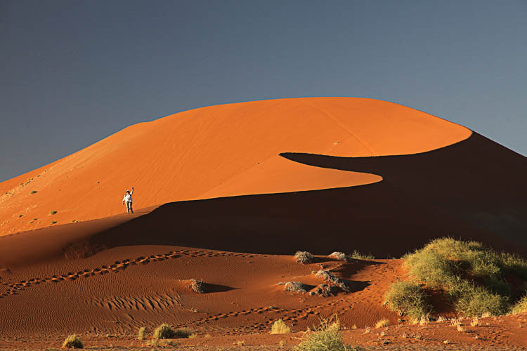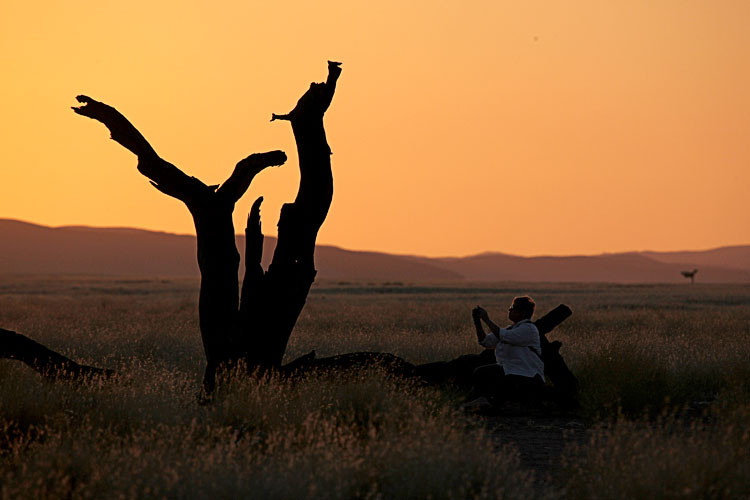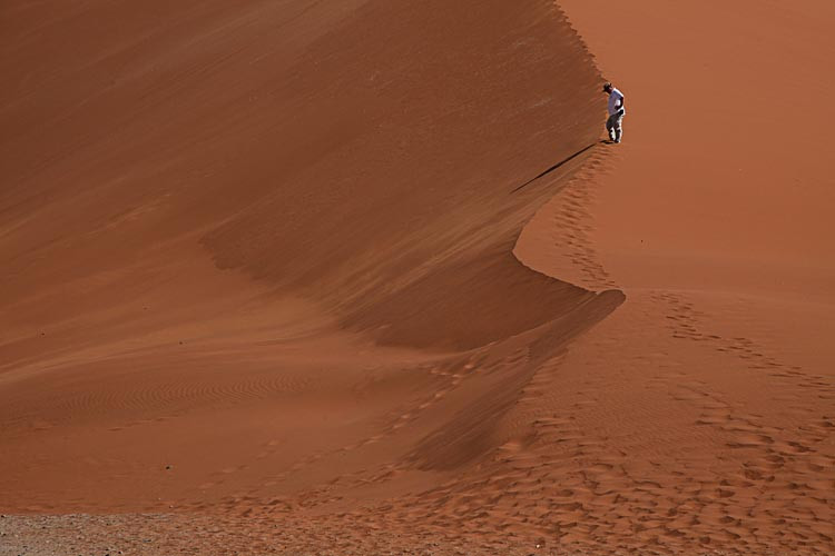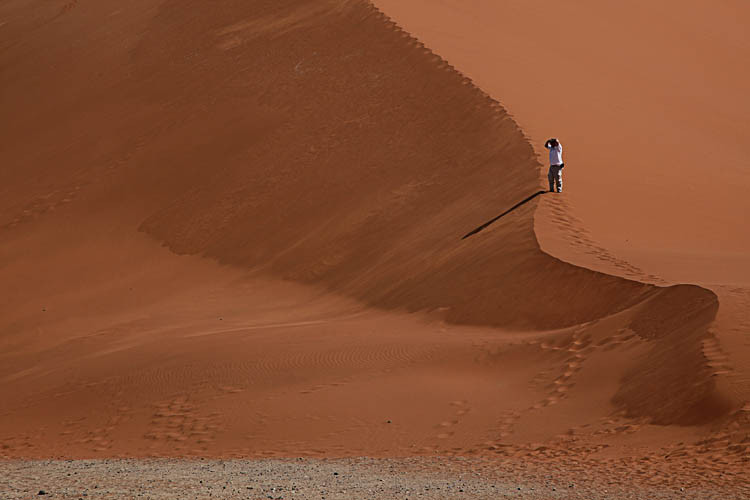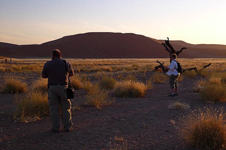 Zurück kommen wir, ohne stecken zu bleiben, ich jage ohne vom Gas zu gehen durch den weichen Sand. Bei der Düne 45 erwarten wir den Sonnenuntergang.