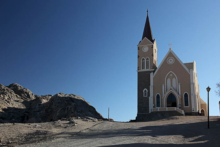 Wir checken im Hotel Bay View ein und machen nach einem Gin-Tonic eine Stadtrunde. Zuerst zu einem Bankomaten, dann zur Felsenkirche.