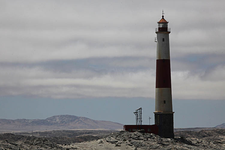 Nachdem sich das Wetter bessert, fahren wir noch einmal zurück Richtung Lüderitz und biegen dann zum Dias Point ab. Der Name hat aber nichts mit veralteter Fotografie zu tun, ein Kapitän Dias hat hier 1488 angelegt und ein Kreuz errichtet. Das gibt es allerdings nicht mehr, aber eine Replik aus dem Jahr 1980. Wir erklimmen einen Aussichtspunkt und sehen neben dem Leuchtturm auch eine vorgelagerte Insel mit einer Robbenkolonie.