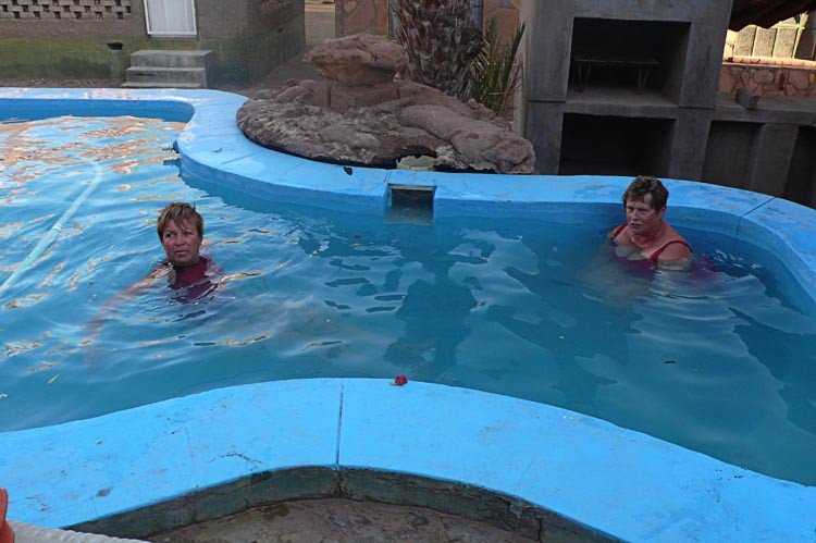 Gegen 13:30 Uhr kommen wir in Ai-Ais an. Eine Lodge mit tollem Spa-Bereich erwartet uns hier zum Lunch. Die Warmwasserquelle hat 60 Grad und sprudelt auch in der Trockenzeit. Das Wasser ist heilkräftig und wird bei rheumatischen Erkrankungen erfolgreich eingesetzt.