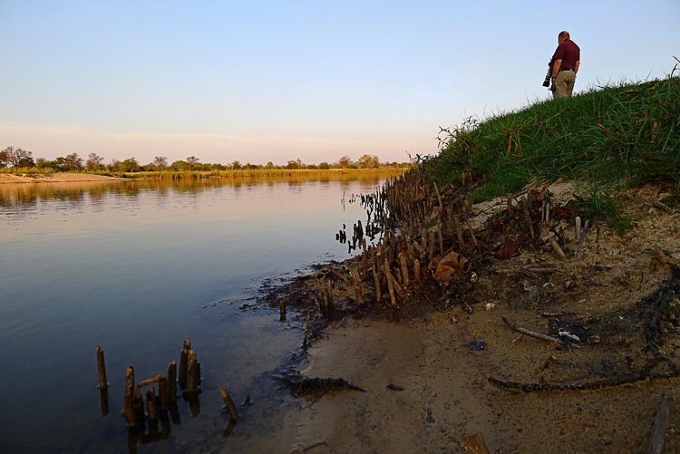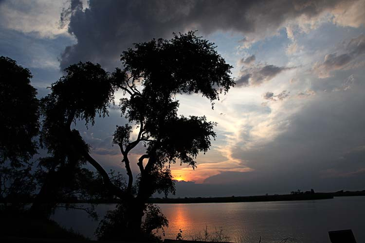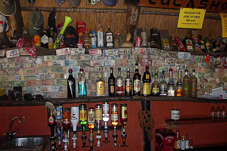 Wir fahren nach Katima Mulilo. Tanken, einkaufen in einem großen Supermarkt, um € 200,- bunkern wir für die nächsten Tage. Am Flughafen kann sich Peperl die neue Plane für das Dachzelt abholen, die alte Plane ist während der Fahrzeugüberstellung von Windhoek vom Fahrtwind bei 160 Km/h zerfetzt worden. Dann fahren wir ca. 140 km über eine unbefestigte Hauptstraße ( M125). Wieder sehen wir Elefanten und Zebras. Gegen 18 Uhr kommen wir zur Kwando Lodge, hier haben wir Halbpension gebucht. Das Essen ist vom Feinsten, wir trinken noch einen Gin Tonic an der Bar und gehen dann zum Chalet, wo wir auf der Terrasse noch einen Schluck Whiskey nehmen. Ab 22:00 Uhr sollte jeder bei seinem Zimmer sein, dann kommen die Flusspferde ans Ufer, um zu grasen.
