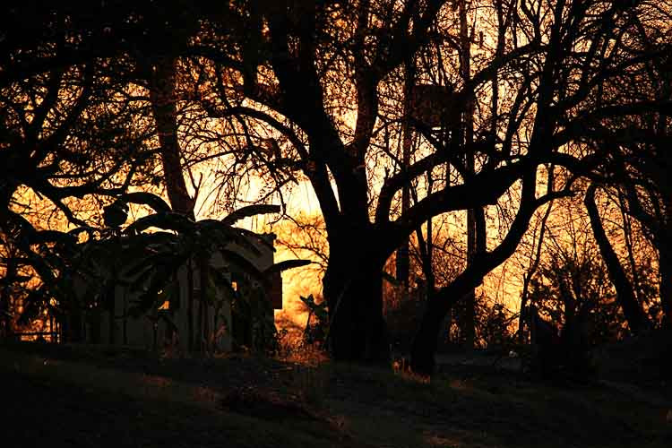 Tag 10, Samstag, 20. 10. 2012 Um kurz vor 6 Uhr stehe ich auf, um den Sonnenaufgang nicht zu verpassen. Und der hat es in sich: Während sich der Himmel feuerrot färbt, beginnt der Personenverkehr von Angola nach Namibia per Einbaum.