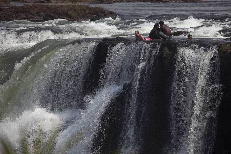 Direkt an der Kante wird gebadet. Ca. 110 m stürzen die Wassermassen in die Tiefe.