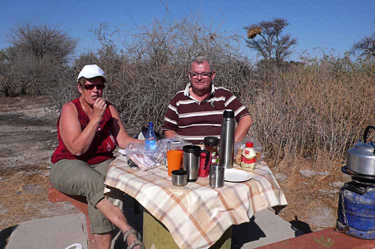 Am Picknick-Platz gönnten wir uns ein gemütliches Frühstück mit heißem Kaffee (Alfred hat das Wasser noch vor dem Aufbruch gekocht).