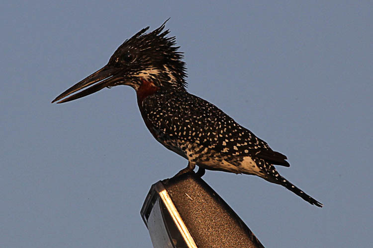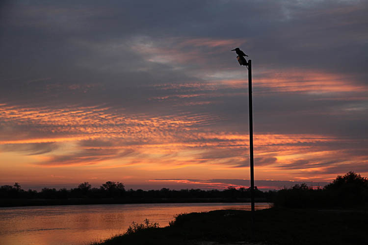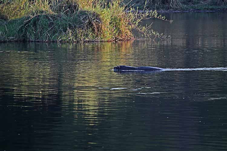 Tag 9, Freitag, 19. 10. 2012 Heute bin ich um 06:00 Uhr aufgestanden. Die Sonne geht gerade auf, es ist einfach toll. Zwei Hippos schwimmen und tauchen am anderen Ufer, halten immer wieder die Köpfe heraus.