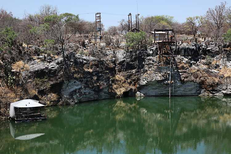 Bei Tsumeb tanken wir, dann fahren wir weiter zum Otjikoto See. Dieser See entstand durch einen Einsturz einer darunter liegender Höhle. Die Tiefe des Sees ist sehr unterschiedlich von 55 m bis 129 m und tiefer angegeben. Nach dem ersten Weltkrieg wurden etliche Kanonen und ein angeblich mit Gold gefüllter Tresor versenkt. Heute speist der See die Stadt Tsumeb mit Trinkwasser.