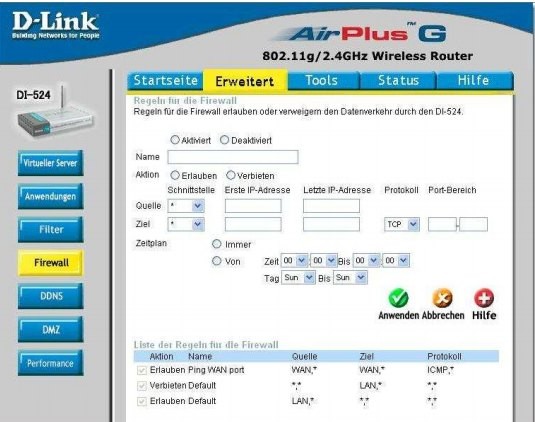 Es geht auch mit den D-Link. Dort gibt e ein Menue für Port-Forwarding. Wie es ganz grob geht: 1) Die Kamera auf z.B. IP X.Y.Z.122 Port 80 einstellen. 2) Im Router ein Port-Forwadring setzen z.B. Port 12222 umleiten auf IP X.Y.Z.122 Port 80 3) Wenn du jetzt von außerhalb im Browser eingibst: htt.. : //ROUTERIP:12222/ dann antwortet deine Kamera. ![]() Allerdings brauchst du auch einen DYNDNS Service, der die aktuelle IP deines Routers kennt. Die hier zu erklären wäre etwas zu aufwendig. Ein Pappenstil ist es aber nicht, etwas KnowHow ist notwendig, aber der Router ist völlig ausreichend. Kauf eine Kamera die bei Bewegung die Bilder per Mail sendet, damit weißt du wenn was passiert. Da brauchts keine :D Portumleitungen und kein DynDNS. Übrigens wird sich kaum jemand für eure Mails interessieren, wie Tante Brigittes Hühneraugen aussehen, etwas weniger RTL schauen und BILD lesen, dann hat man auch weniger Panik was sogenannten Datendiebstahl angeht. :D Und auch was die Verschlüsselungen angeht wird das nicht so heiß gegessen wie es gekocht wird. Im Urlaub wollen alle offene WLANs nutzen, zu Hause wird aber alles schön dicht gemacht.