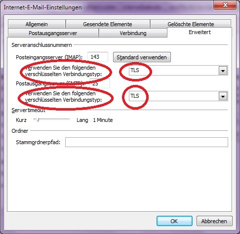Die Kommunikation zw. Mailclient und Mailserver muss verschlüsselt sein, ansonsten kann ich Anmeldename, Kennwort und Inhalt von Mails mitlesen. Hier als Beispiel die Einstellungen für Outlook: ![]() Wichtig: Der Provider muss entweder das Protokoll SSL oder TSL auch unterstützen. Am besten in öffentlichen Hotspots nur Webmail über Https nutzen. Falls keine Verschlüsselte Verbindung möglich ist Mails nicht abrufen. Das gleiche gild für Onlinebanking und Onlineshopping :!: