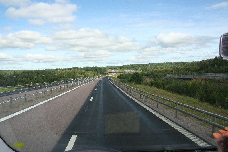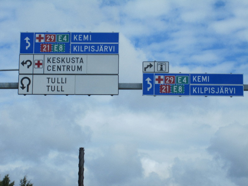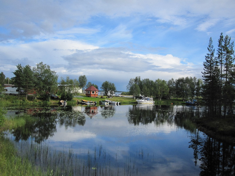 Tag 4 – Donnerstag, 11.08.2011 Der ganze Platz schläft noch, das Entengeschnatter vom Wasser weckt uns. Nach dem Frühstück und dem Auffüllen des Wassertanks, sowie der Entsorgung des Abwassers starten wir auf der E4 Richtung Finnland. Kurz nach Haparanda überqueren wir die Grenze und stellen unsere Uhr um 1 Stunde vor, auch können wir wieder mit € bezahlen.