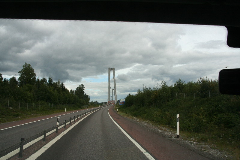 Eigentlich wollten wir ja nur von der Hängebrücke Höga Kustenbro, die zu den längsten Hängebrücken der Welt zählt, ein Foto machen und fahren dazu auf den Rastplatz an der Brücke.