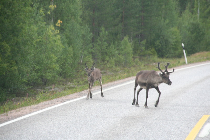 Nur eine schnelle Bremsung kann eine Kollission verhindern. Unter erhöhter Vorsicht und dem ständigen Abspähen der Strassenränder stellen wir uns in Sodankylä auf einen Campingplatz.
