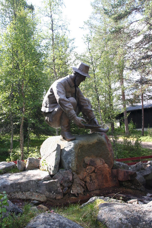 Tag 5 – Freitag, 12.08.2011 Das erste, was wir beim Aufwachen sehen, ist strahlend blauer Himmel und Sonnenschein.Temperatur 11°, also T-shirt-Wetter. Unsere Fahrt geht weiter Richtung Ivalo. Auch heute müssen wir wieder mehrmals abrupt abbremsen, um nicht ein Rentier unwaidmännisch zu erlegen. In Tankavaara besichtigen wir das Goldgräbermuseum mit einer sehr interessanten Ausstellung über die Mühen und Techniken früherer Goldgewinnung.