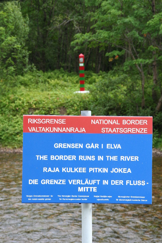 Wir biegen ab, um nach Grense Jakobselv, dem östlichsten Punkt der westlichen Welt zu fahren. Die Strasse wird immer schlechter, unbefestigt und jede Menge Schlaglöcher. Unsere Fahrt geht entlang des kleinen Flüsschens, das die Grenze zu Russland darstellt.