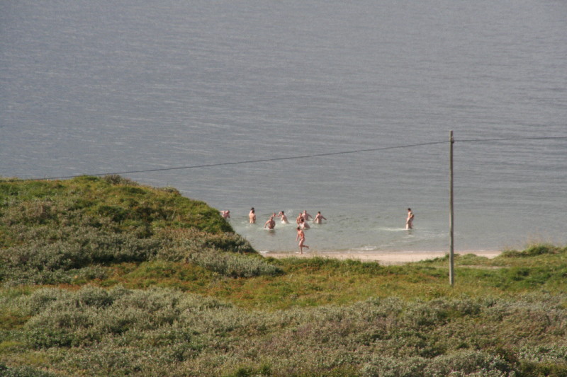 Eine Gruppe Soldaten rückt an und verschwindet Richtung kleinem Sandstrand. Wir schauen nach und sehen plötzlich lauter nackte Männer ins Wasser rennen. Die Kälte des Wassers ist ihnen anzusehen.