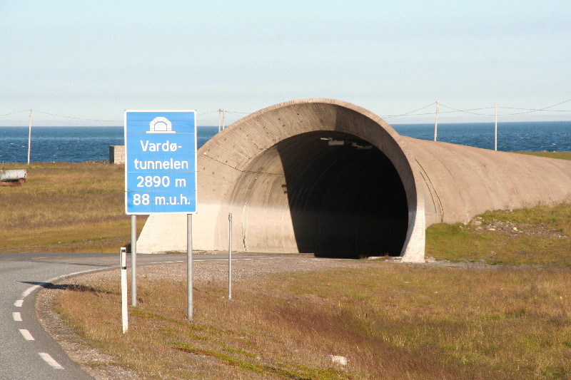 Wir können natürlich nicht widerstehen, bevor wir uns auf den Rückweg machen. 30 km später erreichen wir Vardö, das auf einer Insel liegt und nur durch einen Tunnel, 88 m tief unter dem Meer und fast 3 km lang zu erreichen ist.