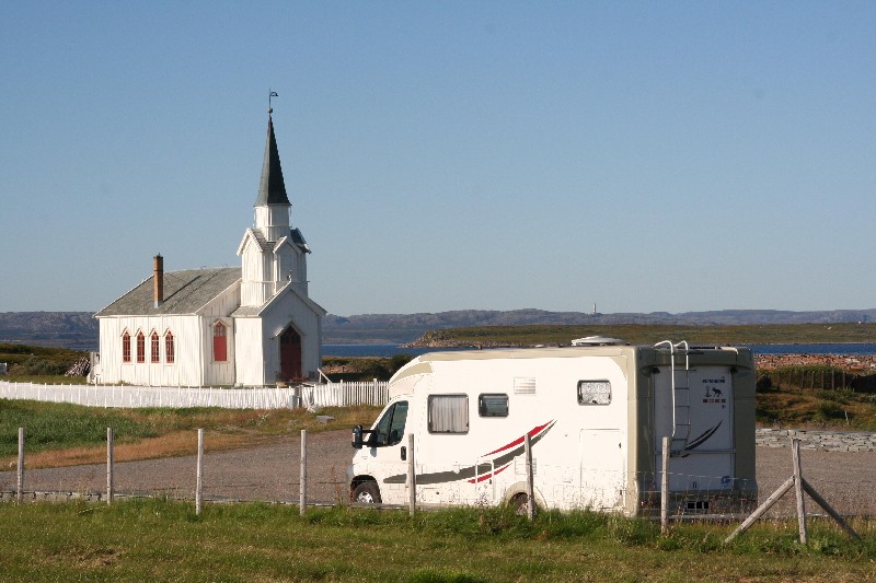 Wir fahren zurück, um in Nesseby neben dem Holzkirchlein direkt am Fjord zu übernachten.