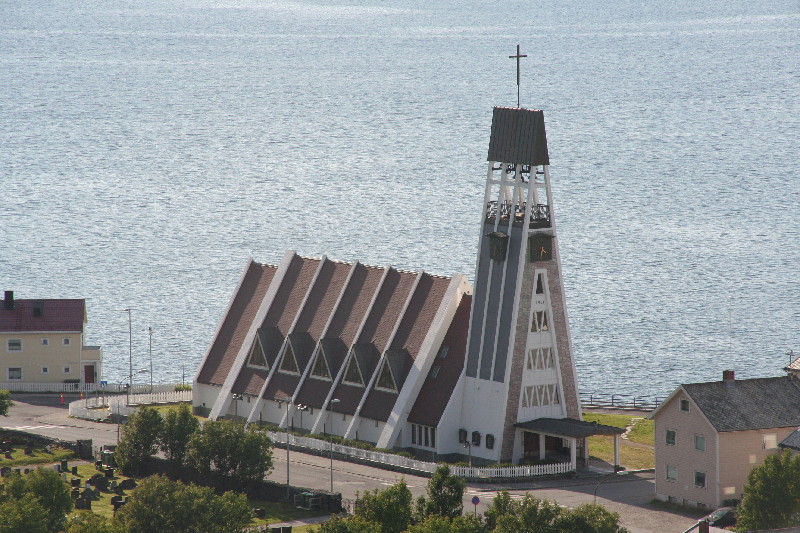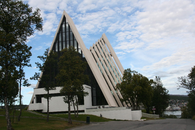 Tag 13 – Samstag, 20.08.2011 Nach einer ruhigen Nacht direkt am Fjord geht’s zurück nach Tromsö. Unser erstes Besichtigungsobjekt, die Eismeerkathedrale, ist leider nur vom 01.06.-15.08. geöffnet. So bleibt uns nur ein Blick von aussen. Schade, dass wir das imposante Bauwerk nicht auch von innen sehen können, vor allem die Glasfenster sollen beeindruckend sein.