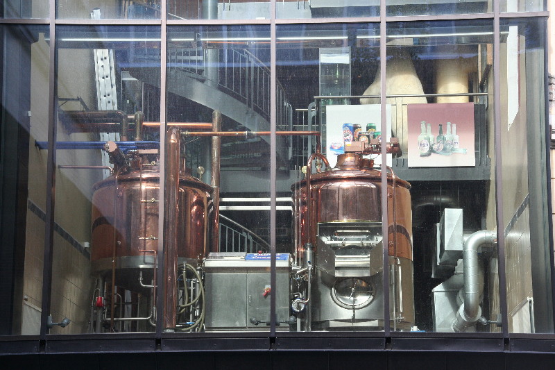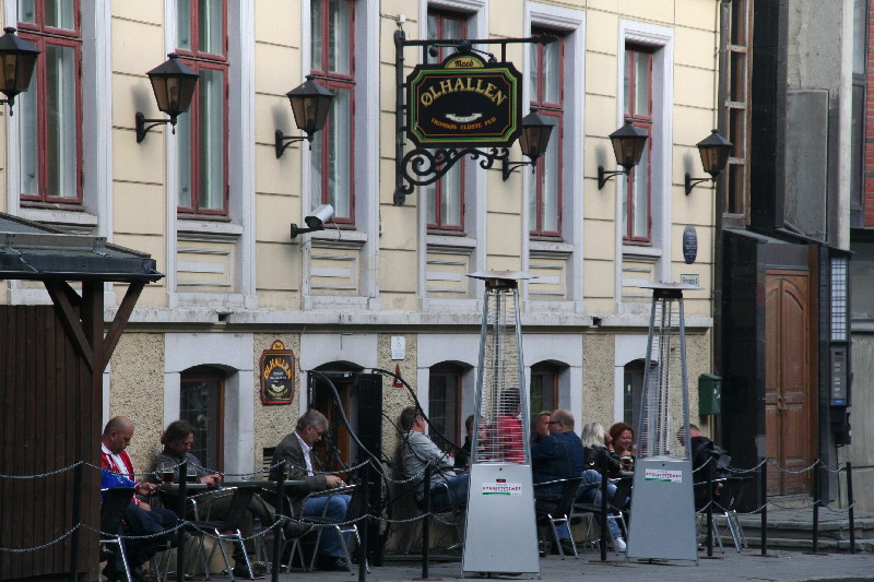 Vor der Mack-Brauerei, der nördlichsten Brauerei der Welt, von einem Deutschen gegründet, sitzen schon die Ersten und lassen sich ihr Bierchen schmecken.