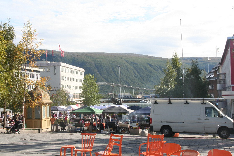 Wir parken am Polaria und gehen zu Fuss in die Innenstadt. In der Fussgängerzone herrscht geschäftiges Treiben mit Informationsständen, Verkaufsbuden und Gemüsemarkt. Unsere ersten Eisbären auf dieser Reise sehen wir im Arcticmuseum.
