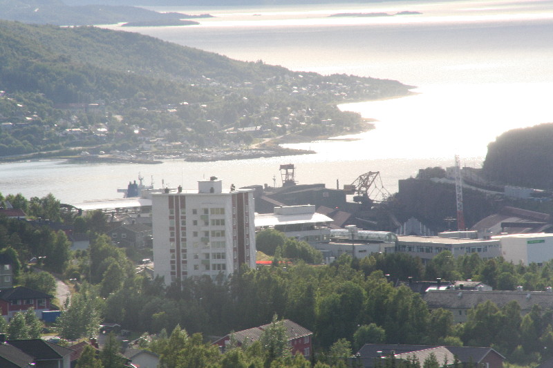 Wir jedoch fahren weiter Richtung Narvik. Von einem Aussichtsplatz hoch oben haben wir eine tolle Übersicht über die Stadt und den Erzverladehafen.