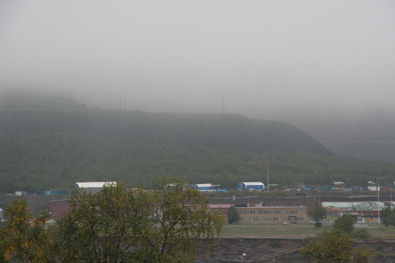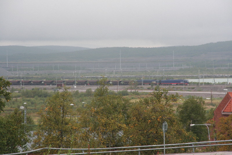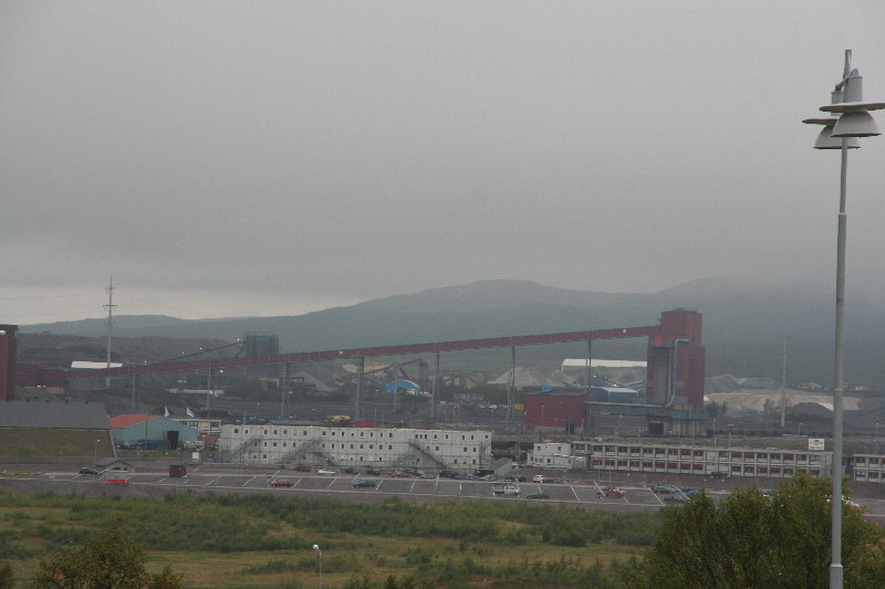 Jetzt wollen wir sehen, wo das ganze Erz herkommt und durchfahren das Björnfjellet, das fast an eine Mondlandschaft erinnert, indem wir dem Schienenstang bis Kiruna nach Schweden in 600 m Meereshöhe folgen. Was wird uns wohl dort erwarten? Wir brauchen ja noch einen Übernachtungsplatz. Das Wetter wird immer schlechter, die Wolken reichen bis zum Boden oder ist es Nebel? Eigentlich wollten wir grillen. Bei dem Wetter? Nein, wir steuern den Campingplatz in Kiruna an.