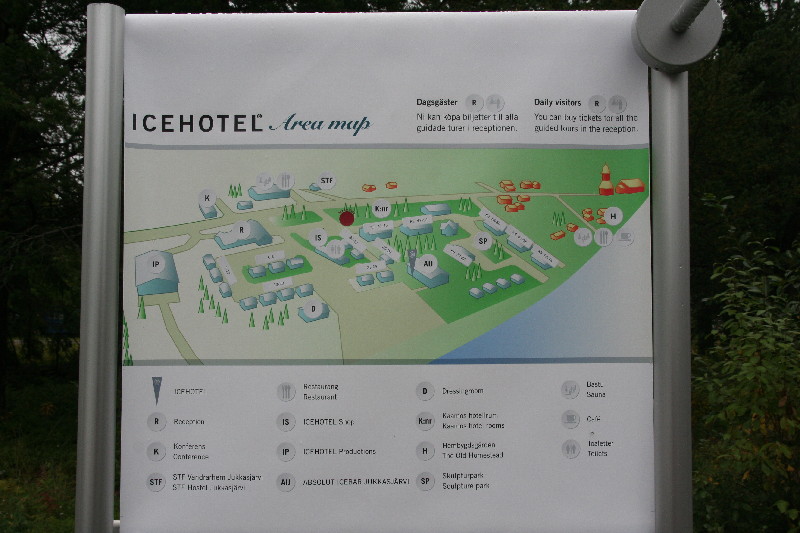 Tag 14 – Sonntag, 21.08.2011 Wir verlassen Kiruna bei unwirklichem herbstlichem Wetter. Immer noch Nebel und 9°. Zu Hause soll es 34° haben. Ein Hinweisschild an der E10 fordert auf, zum berühmten Eishotel Juccasjärvi abzubiegen. Natürlich ist das Hotel noch nicht existent, die in einem Kühlhaus ausgestellten Figuren können auch nicht besichtigt werden. Ab Mitte August ist nördlich des Polarkreises anscheinend die Saison zu Ende.